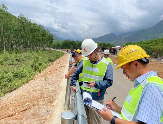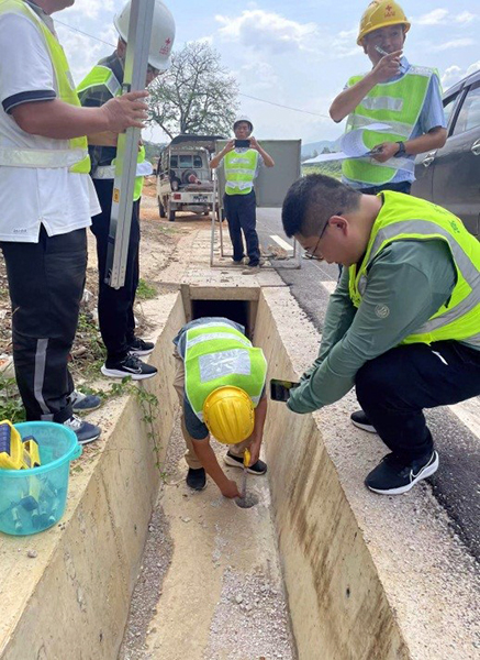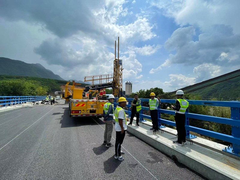 2023年6月2日~2023年6月4日,開展路基、路面、交安工程現(xiàn)場實體檢測,橋梁工程實體檢測及橋梁荷載試驗。