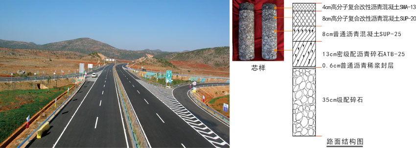 "> 云南陽(yáng)光道橋股份有限公司最早為“云南省交通廳公路管理局工程隊(duì)”,成立于1958年,是云南省最早成立的公路修建隊(duì)伍之一和第一支專鋪筑瀝青路面的專業(yè)隊(duì)伍。經(jīng)過(guò)多次合并和變更,1982年更名為“云南第五公路工程處”。2001年進(jìn)行分離式改制,成立了“云南第五公路橋梁工程有限責(zé)任公司”,同時(shí)保留了“云南第五公路工程處”事業(yè)單位編制。2005年3月整體改制為“云南陽(yáng)光道橋股份有限公司”。 ">公司在承建平鎖高速公路路面工程施工中首次采用柔性基層路面結(jié)構(gòu),采用骨架密實(shí)型機(jī)軋碎石級(jí)配層35cm,稀漿封層0.6cm、ATB-25密級(jí)配瀝青碎石13cm、SUP-25普通瀝青混凝土8cm,SUP-20改性瀝青混凝土8cm,SMA-13改性瀝青混凝土4cm鋪筑。